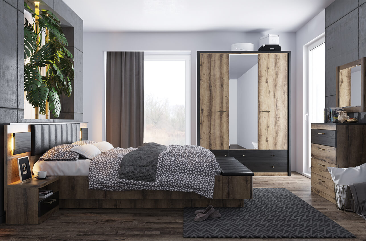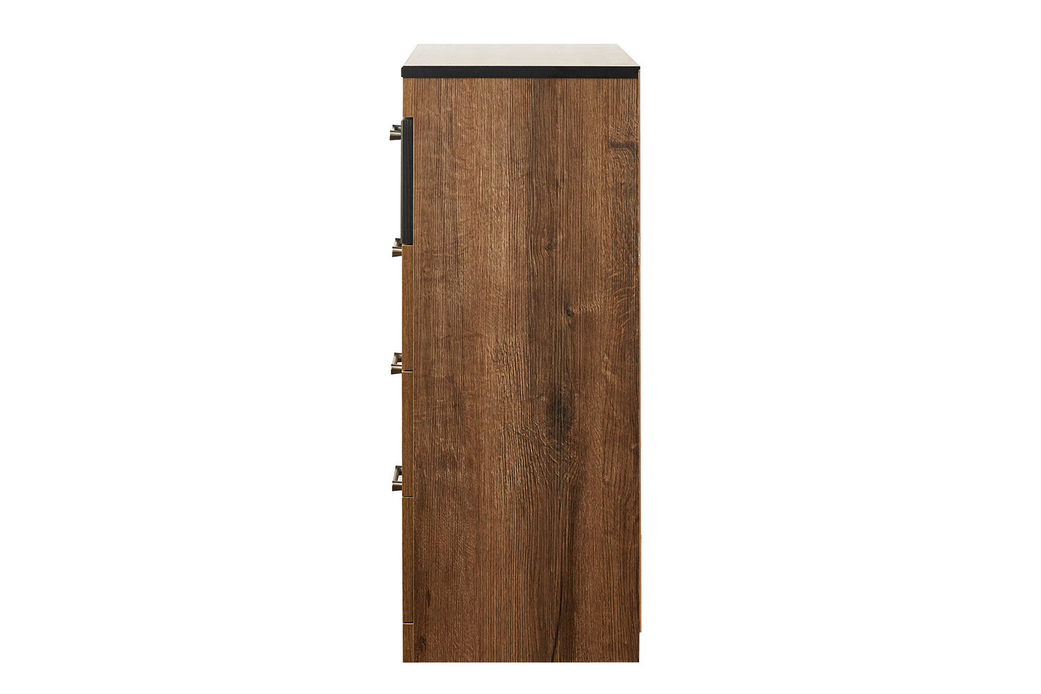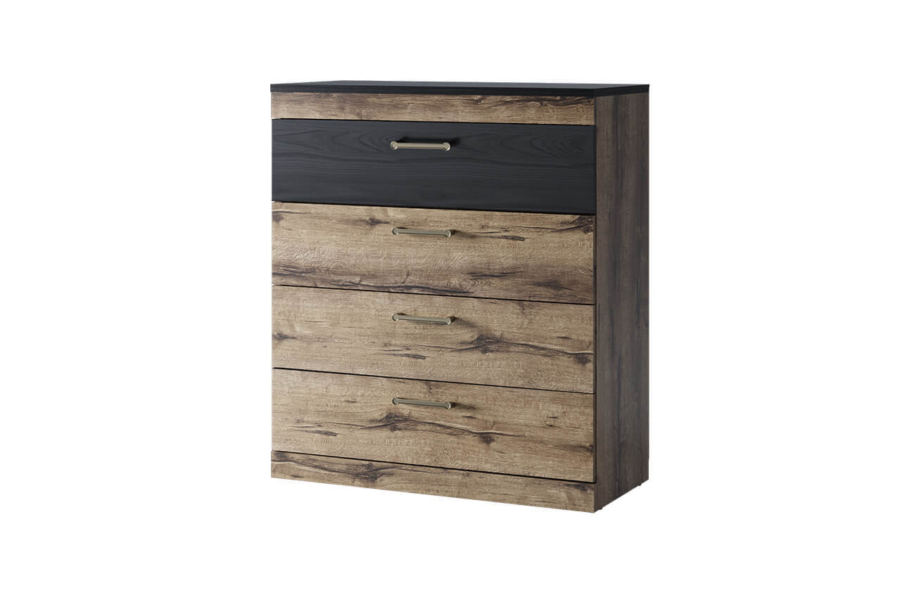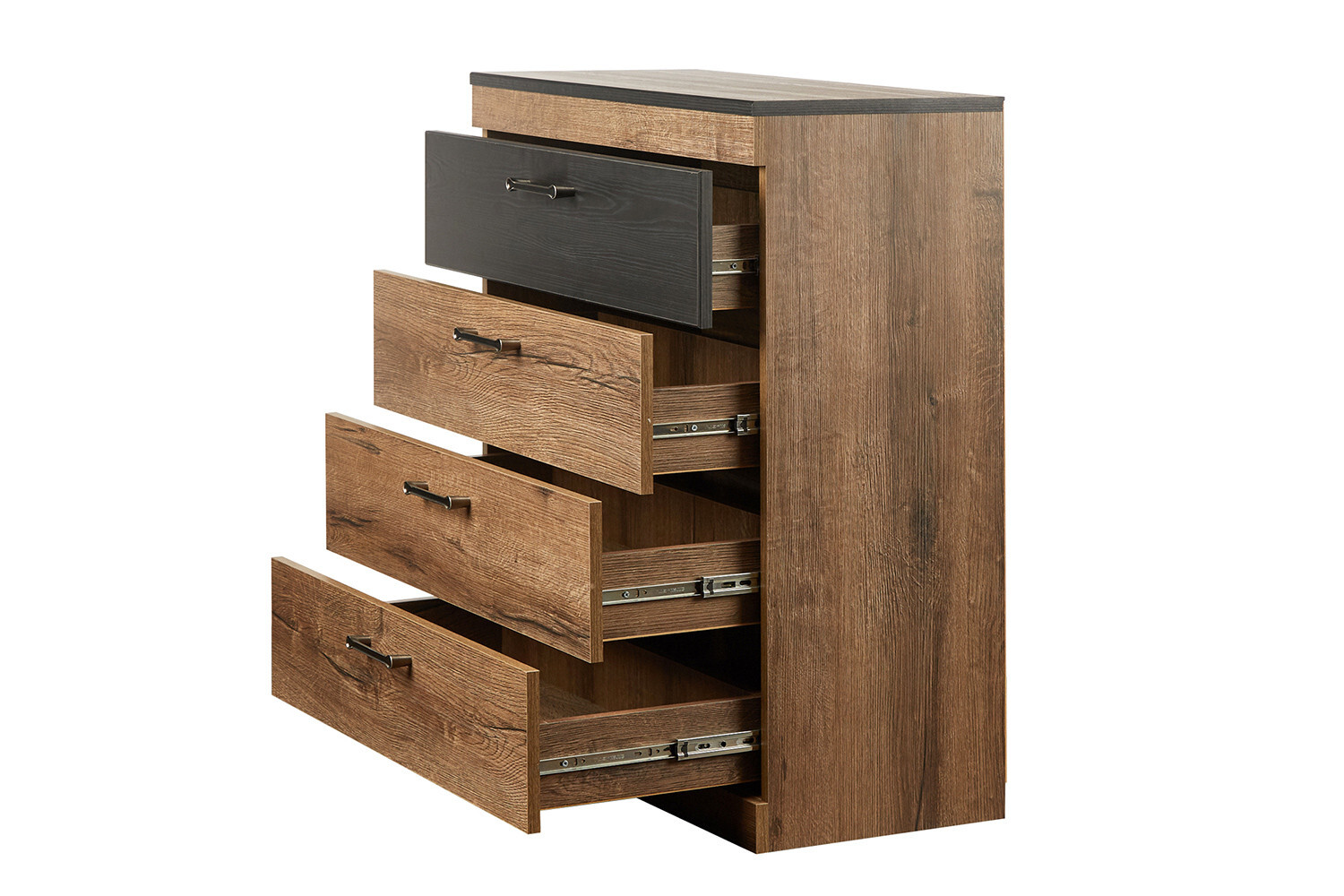 Комод 4S JAGGER организует компактное хранение белья и предметов одежды в интерьере спальни. На верхнем щите можно расположить декор, памятные вещи, фото и другие предметы. Конструкция комода 4S JAGGER прямая, представляет собой четыре выдвижных ящика (4S), расположенных друг над другом.