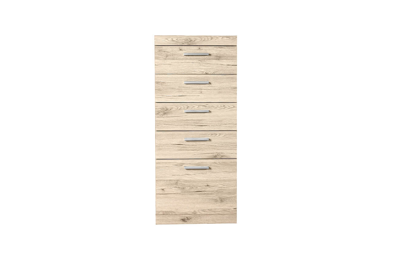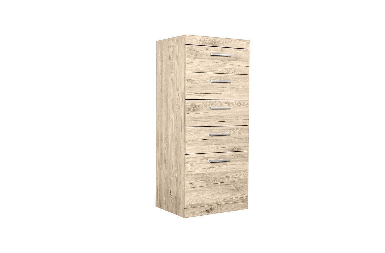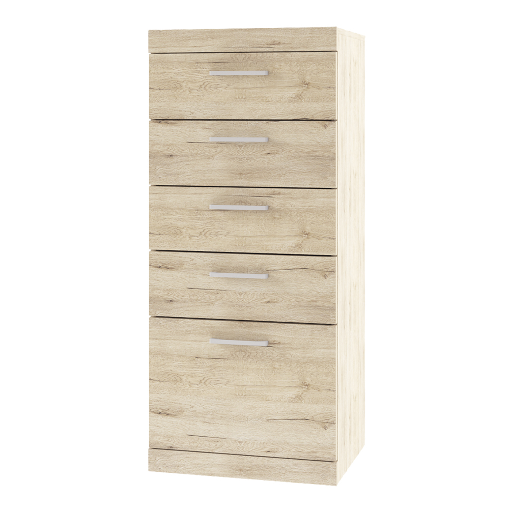 Комод 5S/50 OSKAR создаст современный и уютный интерьер спальни, молодёжной комнаты, прихожей, даже с небольшой площадью, так как ширина изделия – 501 мм. Конструкция комода 5S/50 прямая, представляет собой пять выдвижных ящиков, расположенных друг над другом.