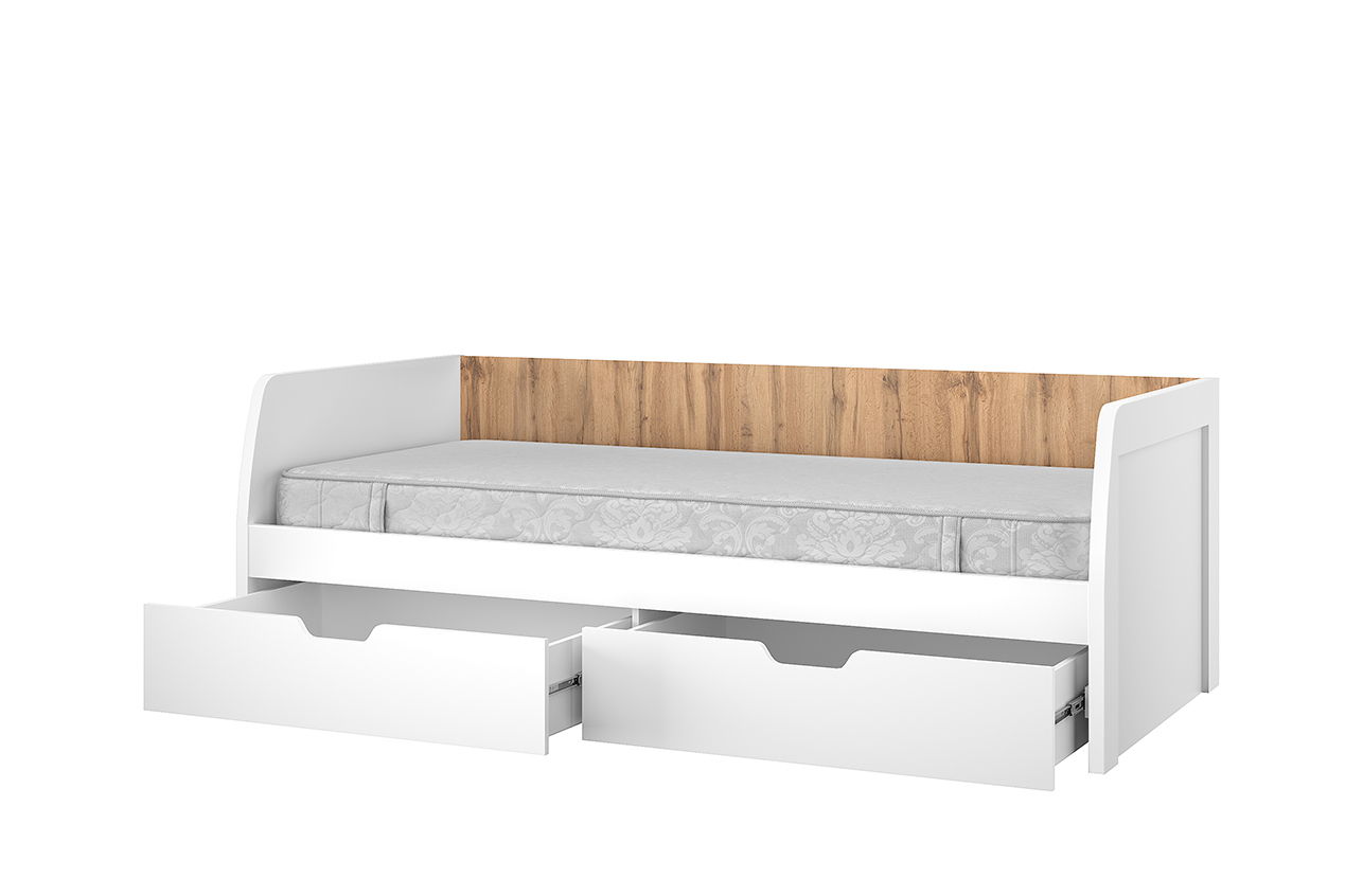 Кровать 90-2 TAURUS – не только удобный, но и функциональный организатор зоны сна и отдыха в молодёжной/детской комнате. Кровать односпальная, размер спального места – 900*2000 мм. Конструкция кровати 90-2 представляет собой корпус с бортами (боковые и задняя стенка), два выдвижных ящика, основание (щиты ЛДСП). Такой вариант кровати очень удобен в эксплуатации - боковой борт будет сохранять целостность обоев или покраски, защищать от соприкосновения со стеной. А дополнительные выдвижные ящики организуют хранение для предметов постельного белья, покрывал, игрушек и других вещей.