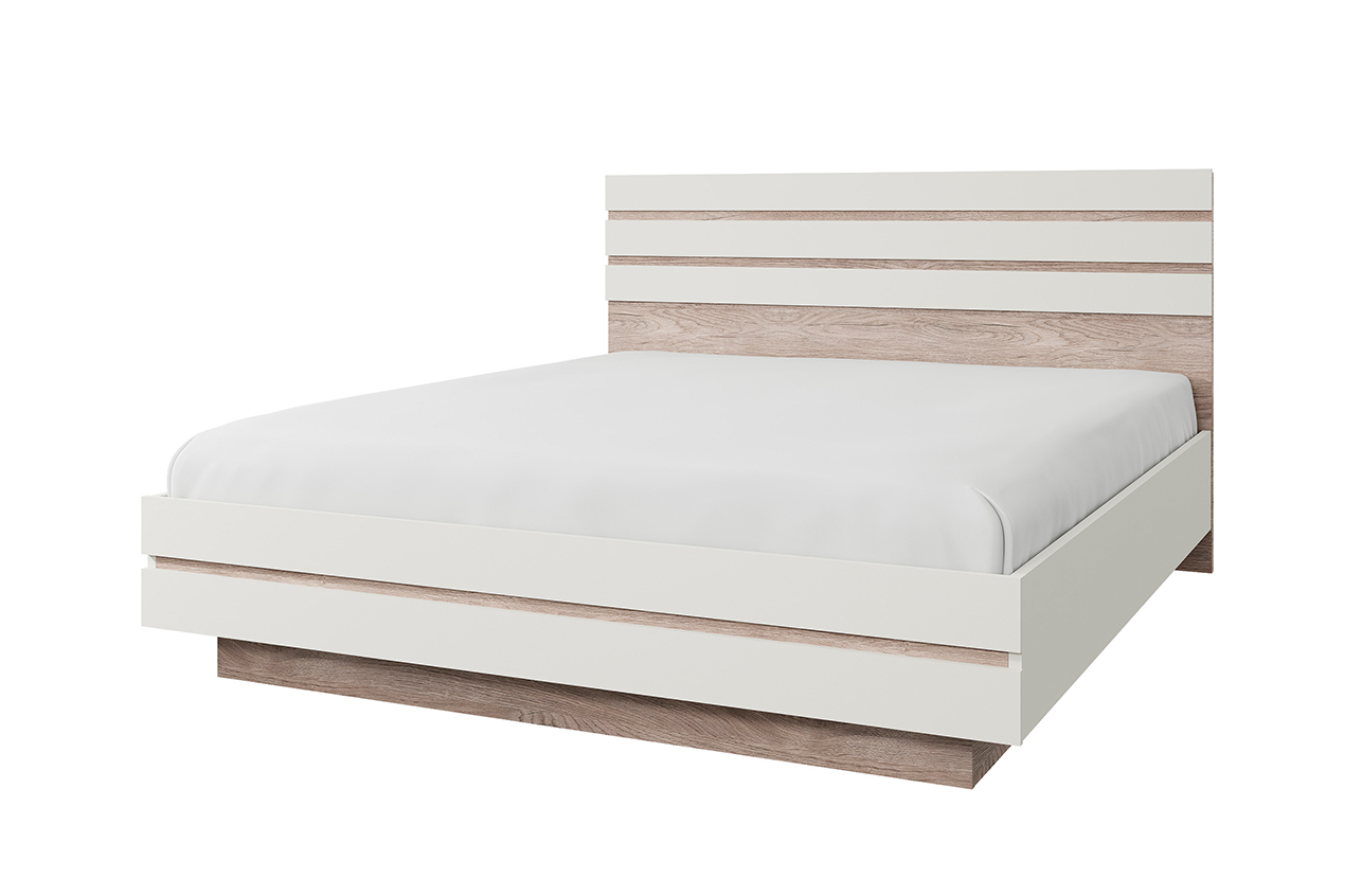 Кровать 180 LIMA. Данная кровать обеспечивает комфортное пространство для сна. Кровать двуспальная (ширина – 1856 мм, высота – 1101 мм, глубина – 2053 мм). Конструкция кровати представляет собой сплошное изголовье прямоугольной формы, декорированное планками ЛДСП; изножье прямоугольной формы, царги и основание (два щита ЛДСП).