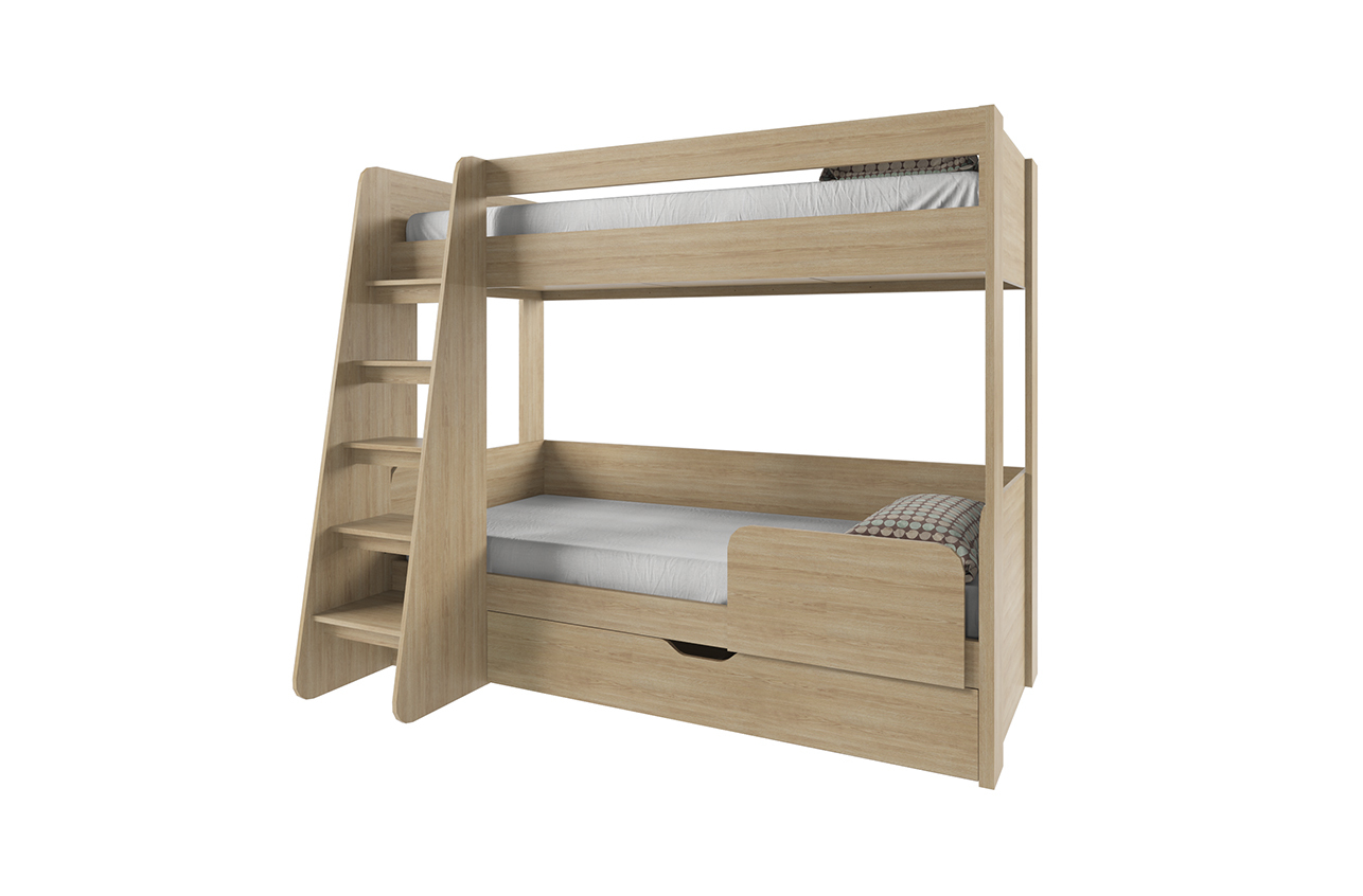 Кровать двухъярусная DIESEL – оптимальное решение организации зоны отдыха и сна для двух персон, если нет возможности установить две отдельные кровати. Кровать по конструкции имеет два яруса, расположенные друг над другом. Нижний ярус имеет вместительный бельевой ящик. Основания кровати представлено щитами ЛДСП.
