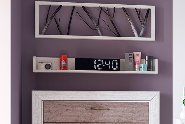 Полка навесная OLIVIA поможет красиво и правильно распределить пространство. Установить такой элемент можно в любом помещении квартиры или дома, а также под зеркалом для хранения украшений, расчёсок, заколок и других вещей, которые должны быть под рукой. Конструкция полки навесной OLIVIA прямая, представляет собой открытую нишу с бортами по бокам и вертикальный щит.
