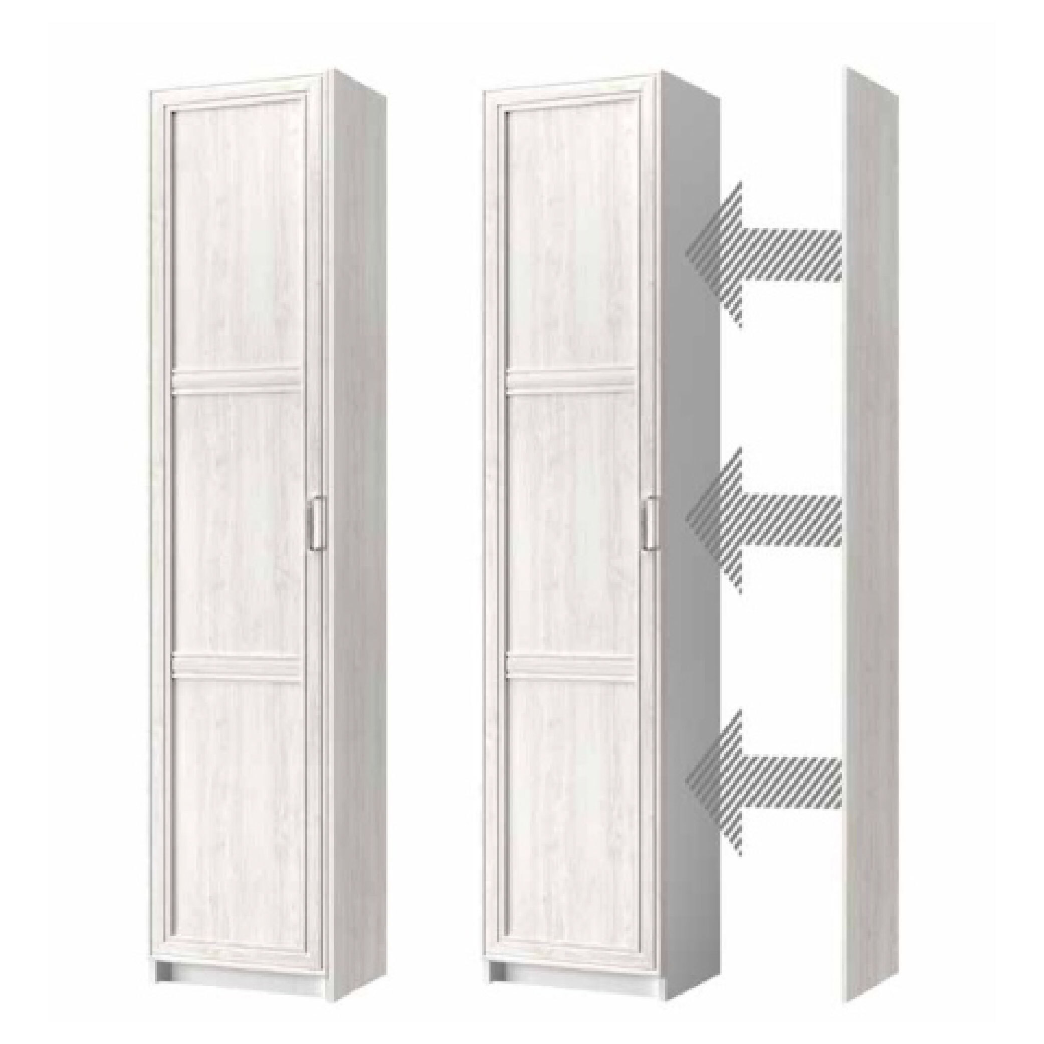 Накладка 35 из серии МОДУЛЬНЫЕ ШКАФЫ – элемент для докупки. Накладка 35 предназначена для того, чтобы закрыть белые боковые стенки крайних элементов составленной шкафной группы с глубиной 350 мм и сделать их в цвете орех элия светлый. Соответственно, данный элемент докупается в том случае, если шкафная группа с дверями 50 F1-1 – в цвете орех элия светлый. Конструкция накладки 35 представляет панель ЛДСП. Особенностью данной позиции является простота крепления, создание шкафной группы в единой текстуре без контрастов при необходимости.