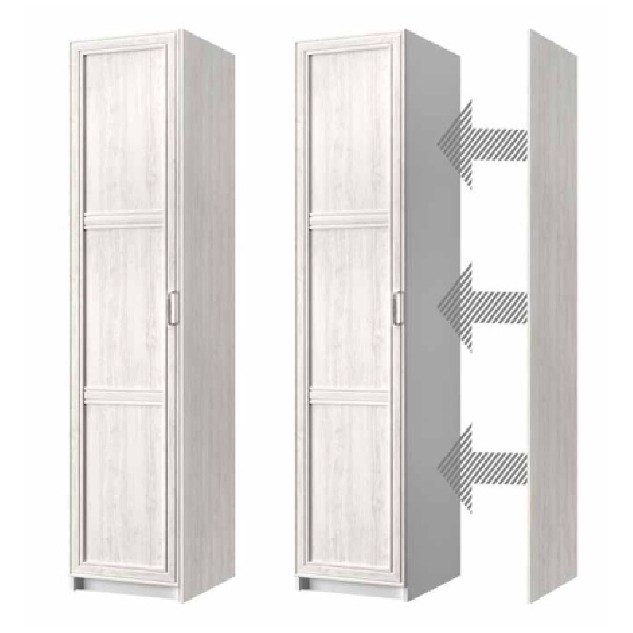 Накладка 56 из серии МОДУЛЬНЫЕ ШКАФЫ – элемент для докупки. Накладка 56 предназначена для того, чтобы закрыть белые боковые стенки крайних элементов составленной шкафной группы с глубиной 564 мм и сделать их в цвете орех элия светлый. Соответственно, данный элемент докупается в том случае, если шкафная группа с дверями 50 F1-1, 25 F1-1 – в цвете орех элия светлый. Конструкция накладки 56 представляет панель ЛДСП. Особенностью данной позиции является простота крепления, создание шкафной группы в единой текстуре без контрастов при необходимости.