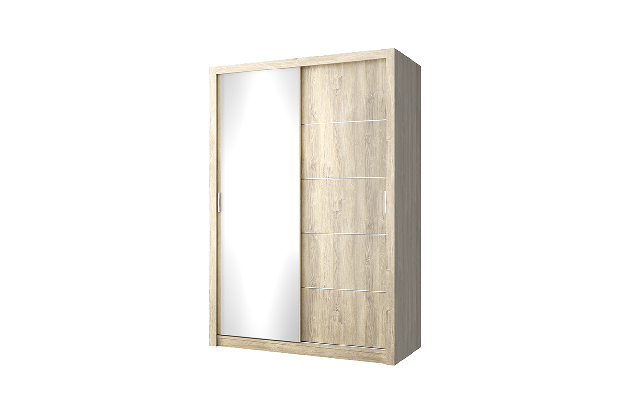 Шкаф 150 LYON, ДУБ МАДУРА. Значительная экономия полезной площади за счёт раздвижных дверей. Шкаф-купе 150 LYON может оформить функционал в любой комнате – гостиная, спальня, молодёжная/детская комната, прихожая, гардеробная зона. Шкаф-купе 150 LYON может оформить функционал в любой комнате – гостиная, небольшая спальня, молодёжная/детская комната, прихожая, гардеробная зона. Конструкция шкафа 150 LYON прямая, представляет одно отделение с внутренней перегородкой, которая разделяет его на отделение с полками ЛДСП и на гардеробное отделение с продольной стационарной штангой, полкой ЛДСП за двумя раздвижными дверями. Кодировка «150» обозначает ширину изделия из ряда представленных. Особенностью элемента является практичность в небольших по площади комнатах, вместительность, универсальность.
