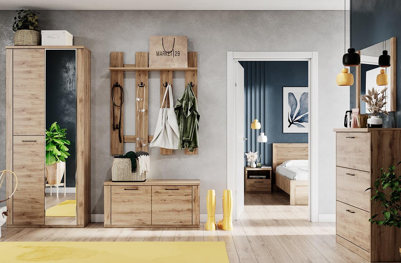 Шкаф 2DZ DOORSET предназначен для оформления удобной прихожей. Элемент компактный и вместительный, что необходимо в небольших помещениях. За счёт зеркала на фасаде можно не приобретать дополнительно зеркало напольное или навесное. Обыгрывать данную модель возможно с помощью представленных элементов коллекции DOORSET для прихожей, на сколько это позволяет площадь помещения. Конструкция шкафа 2DZ прямая, представляет собой одно отделение с выдвижной штангой и полками ЛДСП, нишами для обуви за двумя глухими дверями. На одну из дверей крепится зеркало.