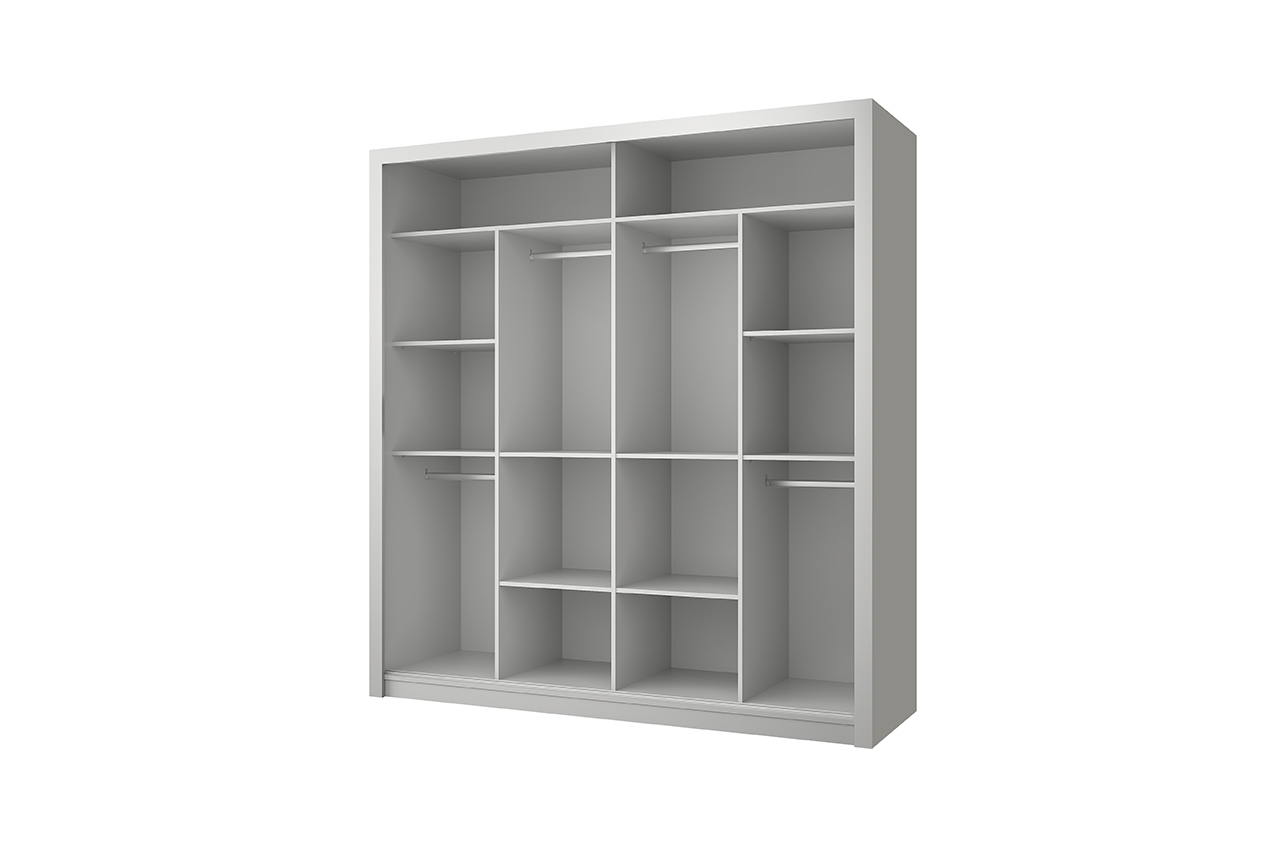 Шкаф 203 MILAN, СЕРЫЙ. Данную модель отличает разнообразное внутреннее наполнение, что позволит разместить не только предметы одежды, белья и обувь, но и другие вещи. Шкаф-купе 203 MILAN может оформить функционал в любой комнате – гостиная, спальня, молодёжная/детская комната, прихожая, гардеробная зона. Конструкция шкафа 203 MILAN прямая, представляет четыре отделения с продольными стационарными штангами, десять (10) ниш за двумя раздвижными дверями (с внешней стороны фасадов крепятся зеркала). Кодировка «203» обозначает ширину изделия из ряда представленных. Особенностью элемента является практичность, вместительность, универсальность, наличие двух больших зеркал, что визуально расширит пространство.