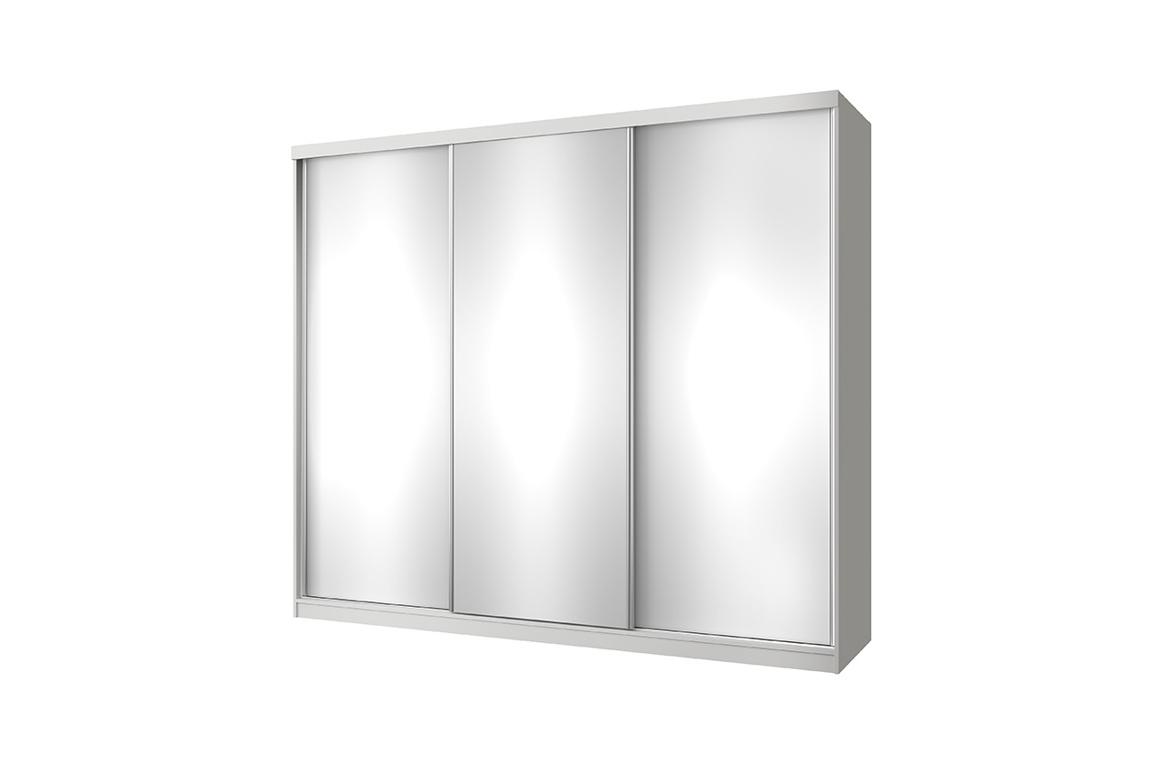Шкаф 250 MILAN, БЕЛЫЙ. Данную модель отличает максимальное разнообразие внутреннего наполнения, что позволит упорядочить большое количество различных вещей и предметов быта. Шкаф-купе 250 MILAN может оформить функционал в любой комнате – гостиная, спальня, молодёжная/детская комната, прихожая, гардеробная зона. Конструкция шкафа 250 MILAN прямая, представляет одно отделение с продольной стационарной штангой, полкой ЛДСП и тремя выдвижными ящиками, одно отделение с продольной стационарной штангой и полкой ЛДСП, одно отделение с полками ЛДСП за тремя раздвижными дверями (с внешней стороны фасадов крепятся зеркала). Кодировка «250» обозначает ширину изделия из ряда представленных. Особенностью элемента является практичность, вместительность, универсальность, наличие трёх больших зеркал, что визуально расширит пространство.