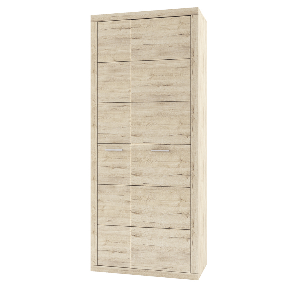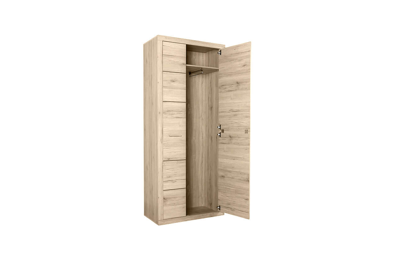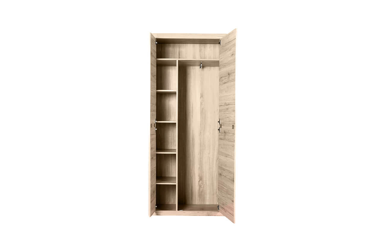 Шкаф 2D OSKAR создаст современный интерьер молодёжной комнаты или прихожей в приятном и уютном стиле кантри. Модуль интересен своим дизайном и конструкцией: по периметру корпуса идёт декоративная планка из ЛДСП, сборные фасады (двери) разной ширины. Конструкция шкафа 2D представляет собой одно отделение с полками из ЛДСП, одно гардеробное отделение с выдвижной вешалкой (штангой) и вместительной нишей за двумя глухими дверями (2D). Двери распашные, крепятся на петли к боковому корпусу изделия.