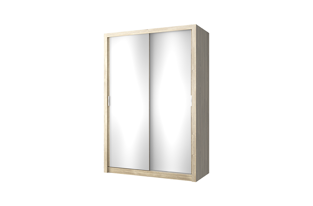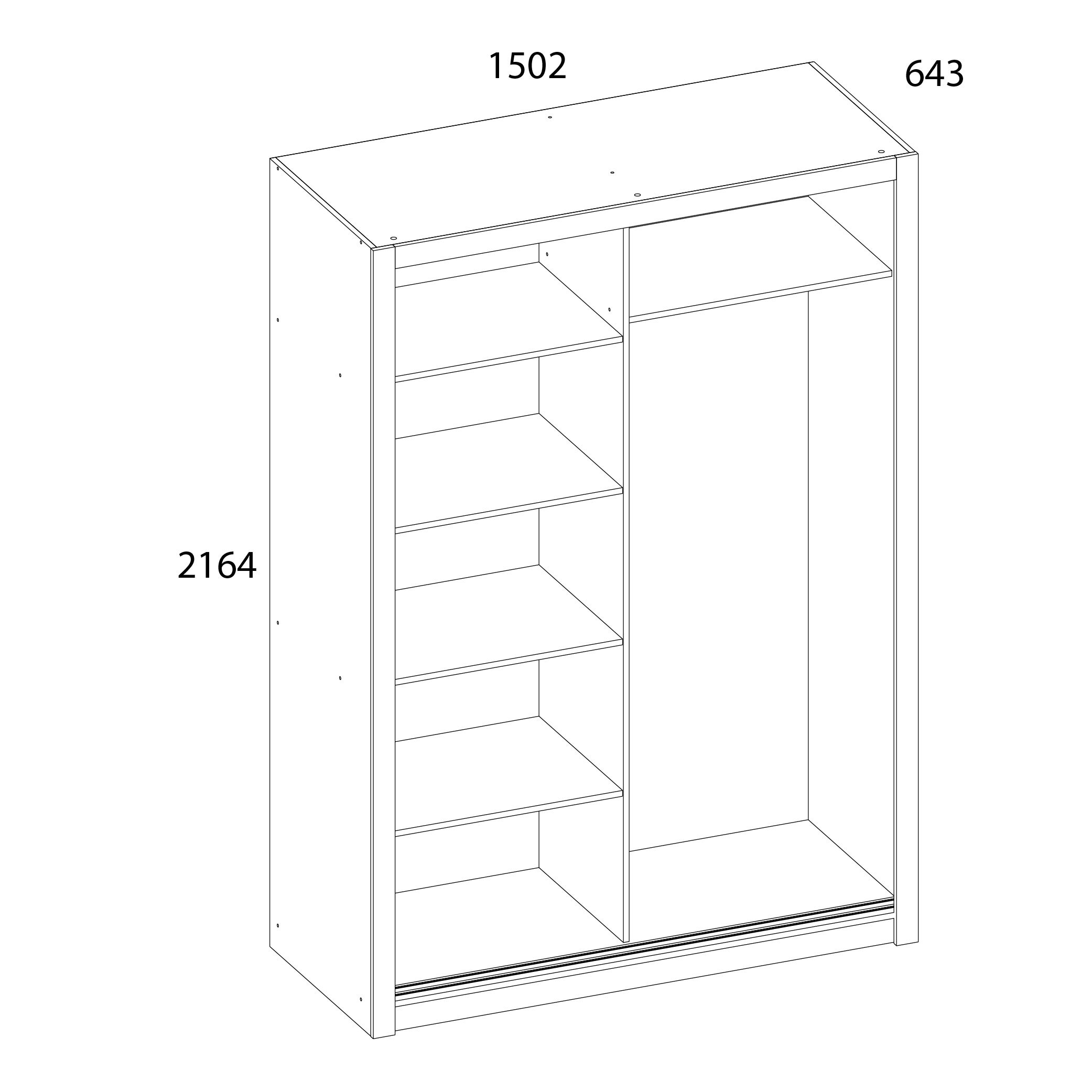 Шкаф 150 MILAN, ДУБ МАДУРА. Значительная экономия полезной площади за счёт раздвижных дверей. Шкаф-купе 150 MILAN может оформить функционал в любой комнате – гостиная, спальня, молодёжная/детская комната, прихожая, гардеробная зона. Шкаф-купе 150 MILAN может оформить функционал в любой комнате – гостиная, небольшая спальня, молодёжная/детская комната, прихожая, гардеробная зона. Конструкция шкафа 150 MILAN прямая, представляет одно отделение с внутренней перегородкой, которая разделяет его на отделение с полками ЛДСП и на гардеробное отделение с продольной стационарной штангой, полкой ЛДСП за двумя раздвижными дверями (с внешней стороны фасадов крепятся зеркала). Кодировка «150» обозначает ширину изделия из ряда представленных. Особенностью элемента является практичность в небольших по площади комнатах, вместительность, универсальность, наличие двух больших зеркал, что визуально расширит пространство.