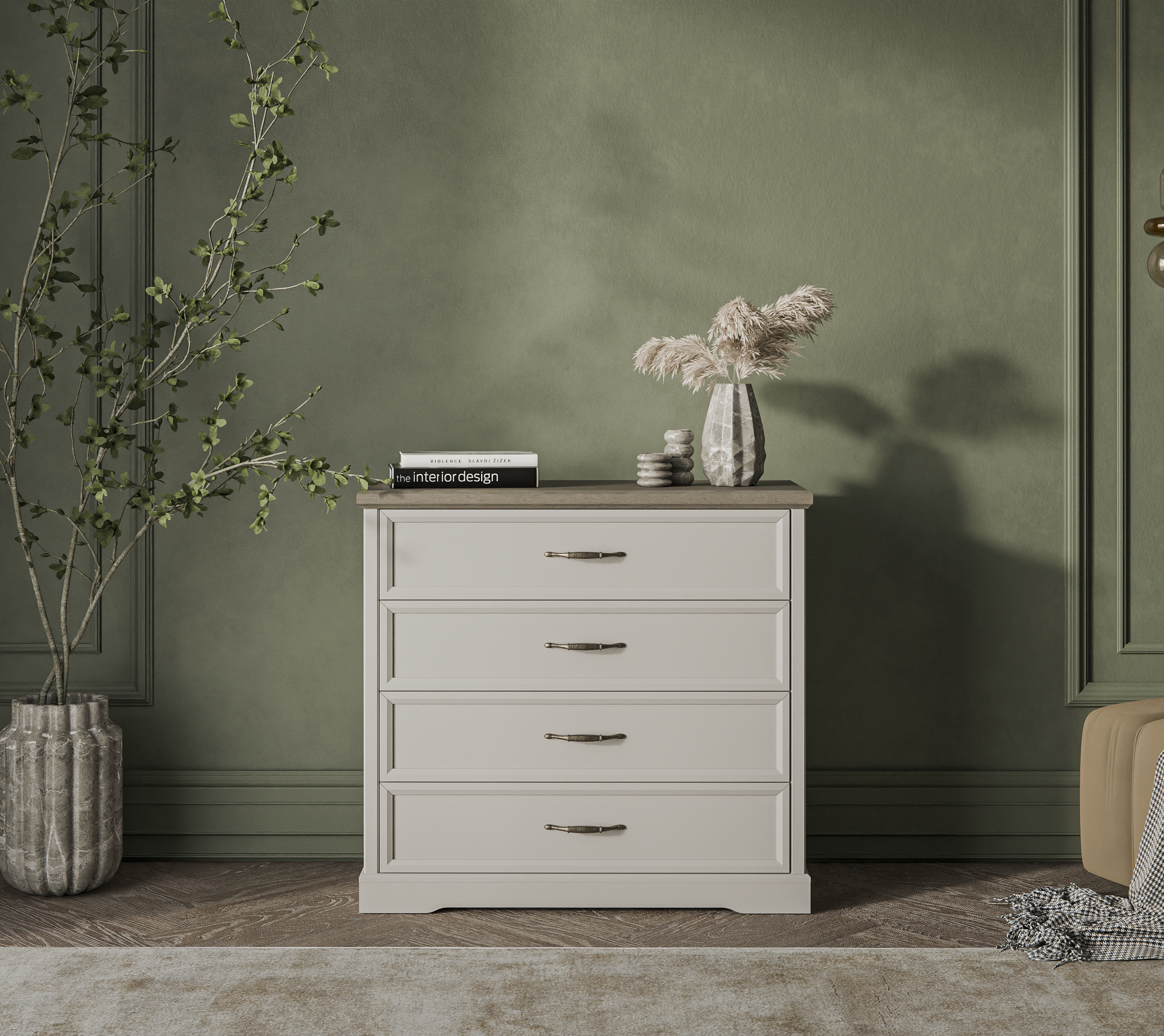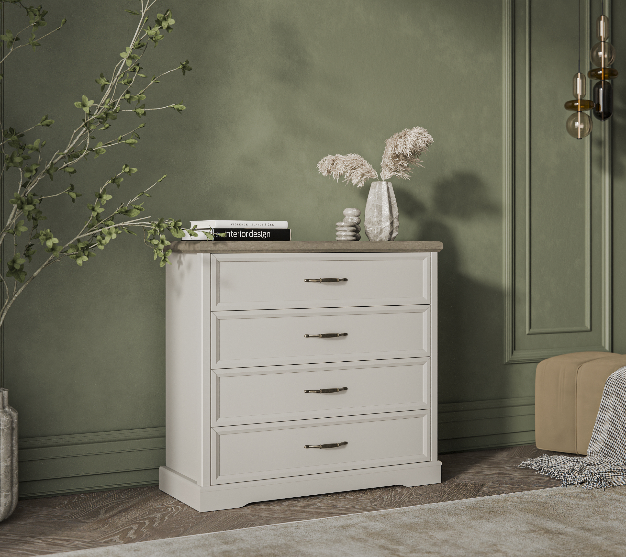Комод 4S TOSCANA NEW – один из самых необходимых предметов мебели, который поможет оформить любую комнату, организовать упорядоченное хранение вещей. Комод может стать заменой тумбы RTV для телевизора, туалетного столика. Конструкция комода 4S прямая, представляет четыре выдвижных ящика, расположенных друг над другом. Особенностью элемента является эстетический внешний вид, использование направляющих с доводчиками.