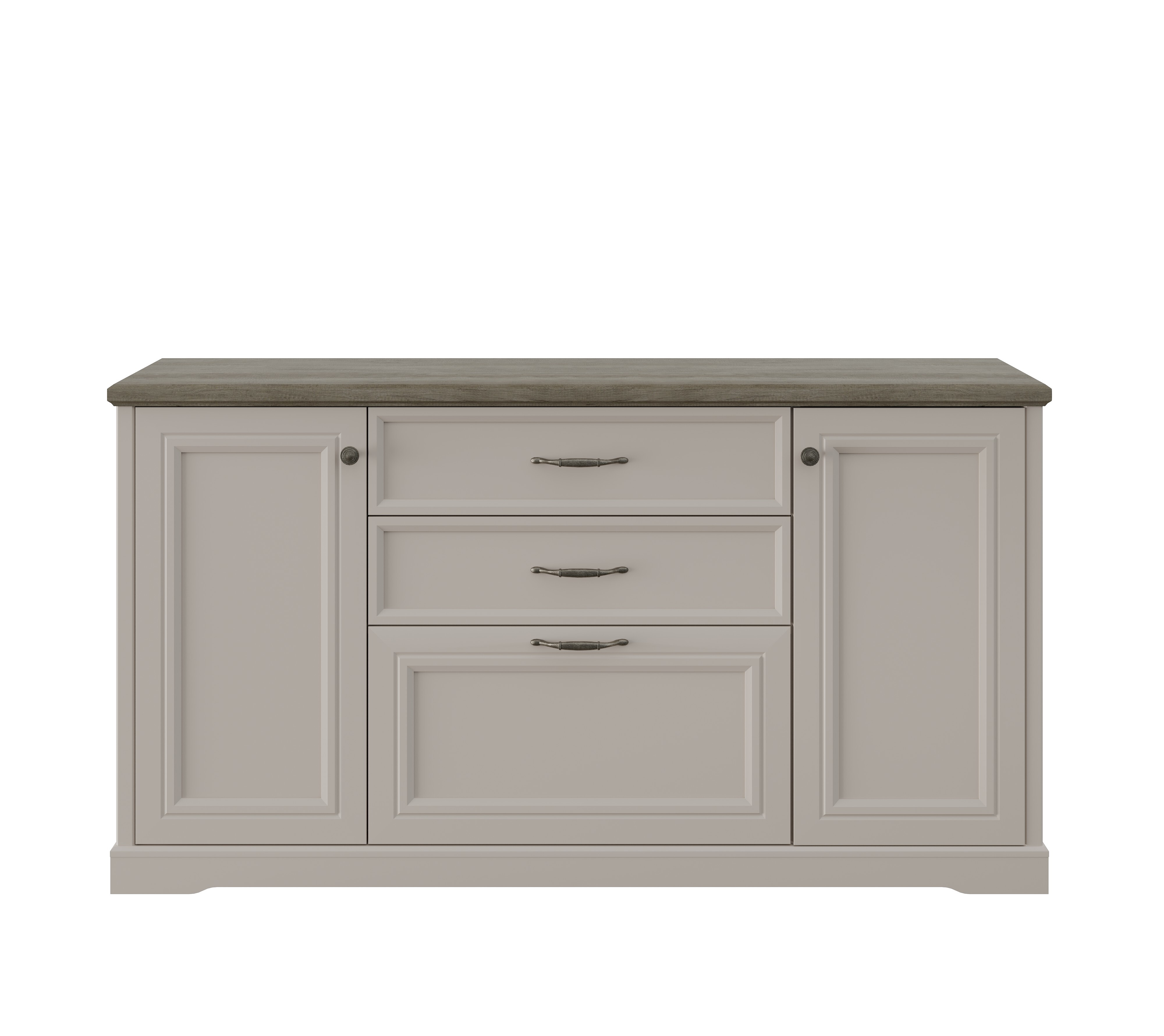 Материал: рамочно-филенчатая конструкция глухого фасада, рамка МДФ – 19 мм, филенка ЛДСП – 8 мм, цвет – персидский жемчуг 810 PO; фасады выдвижных ящиков – ЛДСП (16 мм - основа), МДФ (9 мм - планка), цвет – персидский жемчуг 810 PO.