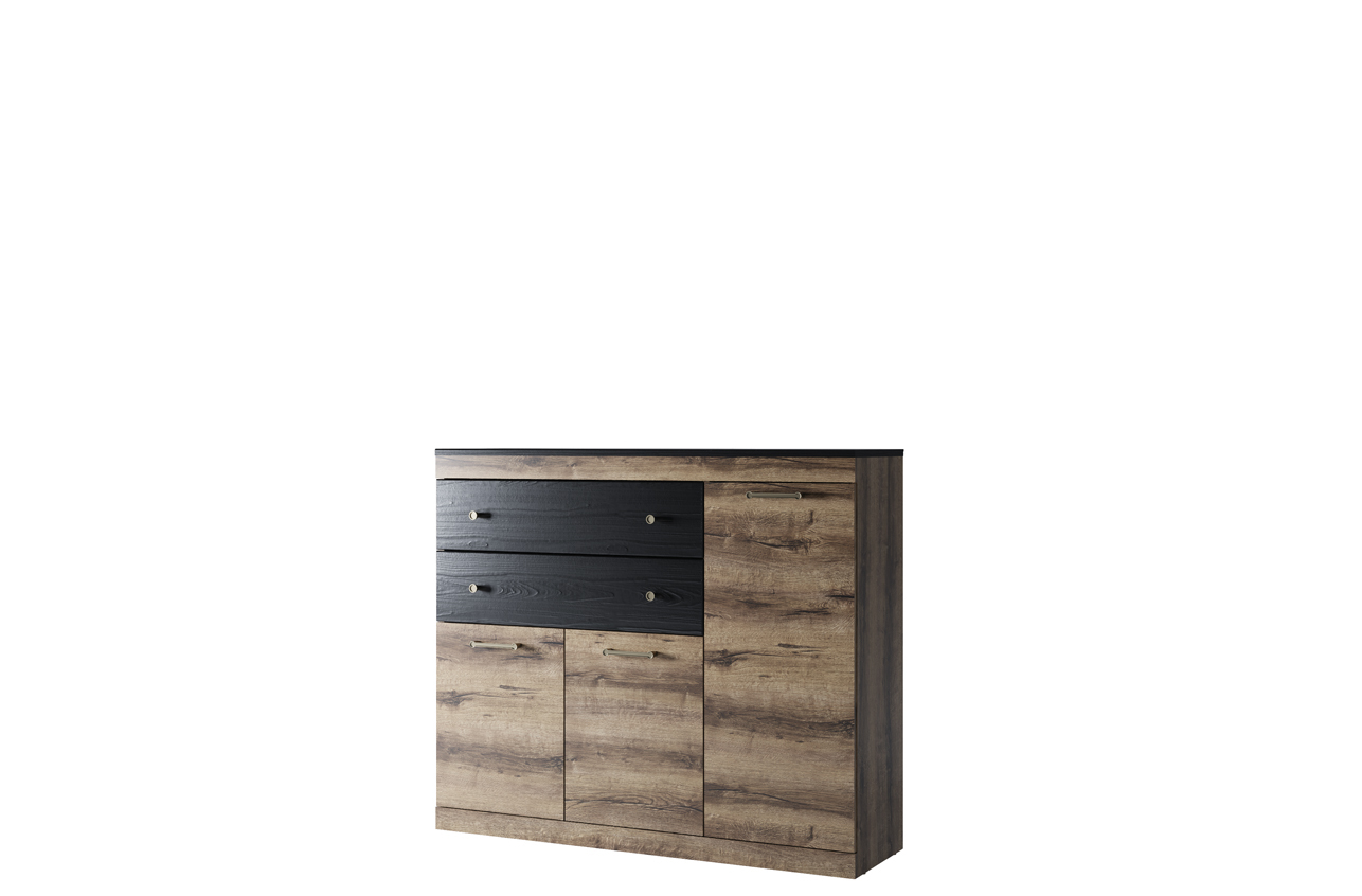 Тумба 3D2S JAGGER – прекрасное дополнение в интерьере спальни и гостиной. Выступает не только как оригинальная часть гарнитура, но и как самостоятельный предмет мебели. Конструкция тумбы 3D2S JAGGER прямая, представляет одно отделение с полками из ЛДСП за глухой дверью, одно отделение с полкой из ЛДСП за двумя глухими дверями, два выдвижных ящика (2S). Двери распашные, крепятся на петли к внутренней перегородке, боковому корпусу изделия. Элемент может организовать хранение постельного белья, предметов одежды, полотенец, скатертей и салфеток, посуды и столовых предметов, а также других предметов быта.