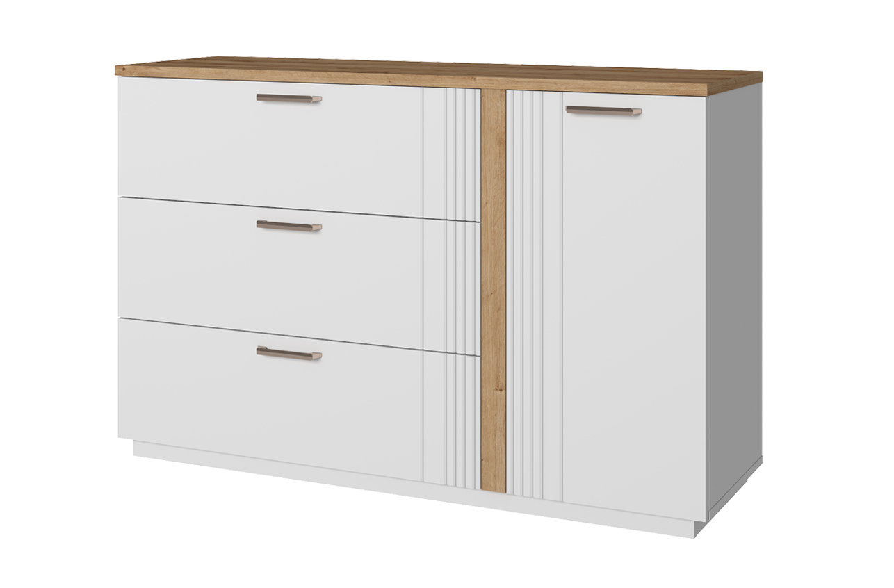 Тумба 1D3S MATEO – универсальный предмет мебели для любого по функционалу интерьера, который может заменить привычный комод. Данная модель может устанавливаться как самостоятельный элемент, так и в комбинации с другими позициями коллекции MATEO. Конструкция тумбы 1D3S прямая, представляет одно отделение с полкой ЛДСП за глухой дверью (1D), три выдвижных ящика, расположенные друг над другом (3S). Дверь распашная, крепится на петли к боковому корпусу изделия. Особенностью является использование петель и направляющих с доводчиками.