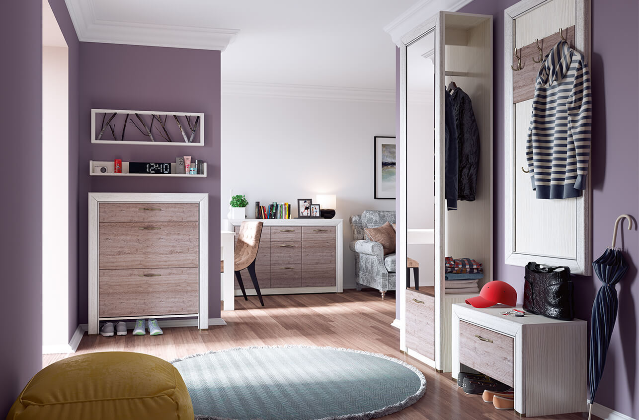 Тумба для обуви 2D1S OLIVIA – элемент, выполняющий сразу несколько функций в прихожей – организация хранения обуви и других вещей в выдвижном ящике, сохраняет пространство, не занимая полезную площадь. Конструкция тумбы для обуви 2D1S OLIVIA прямая, представляет собой один выдвижной ящик (1S), два отделения для хранения обуви (глубина 285 мм) за откидными дверями (2D), внизу по конструкции представлена ниша для дополнительного количества обуви.