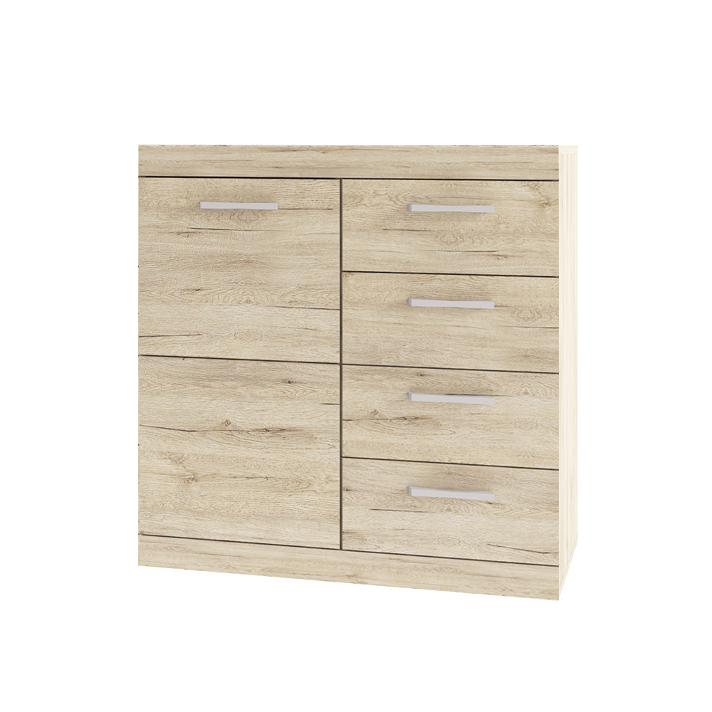Тумба 1D4S OSKAR выступает альтернативой классического комода, даже для помещений небольшой площади. Конструкция тумбы 1D4S прямая, представляет собой одно отделение с полкой из ЛДСП за глухой дверью (1D), четыре выдвижных ящика (4S). Дверь распашная, крепится на петли к боковому корпусу изделия.