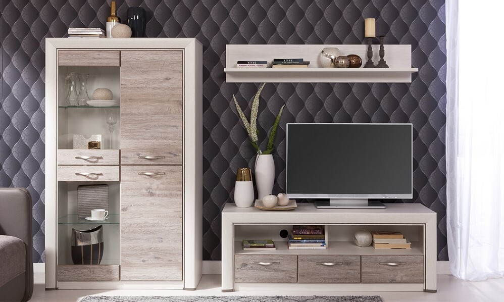 Тумба RTV 3S коллекции OLIVIA предназначена для техники, даже больших размеров и габаритов (глубина 400 мм). В корпусе тумбы предусмотрены отверстия для удобного хранения проводов. В гостиной никогда не будет беспорядка – конструкция тумбы RTV 3S представляет собой две глубокие ниши для техники, три выдвижных ящика (3S) для хранения дисков, пультов, журналов, газет, дополнительных проводов и других предметов, которые должны быть скрыты и всегда находиться под рукой. Элемент идеален в комбинации с такими модулями коллекции OLIVIA, как полка 1D и полка, так как эти элементы имеют одинаковую ширину – 1360 мм.