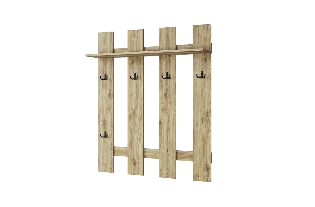 Вешалка 105 DOORSET практичное решение для организации хранения верхней одежды и сохранения полезной площади. Конструкция вешалки 105 прямая, сборная и представляет собой панели, соединённые между собой планками, полку консольную, два ряда крючков. Данная модель будет гармонично сочетаться с тумбой для обуви 2D-1 за счёт близких значений ширины.