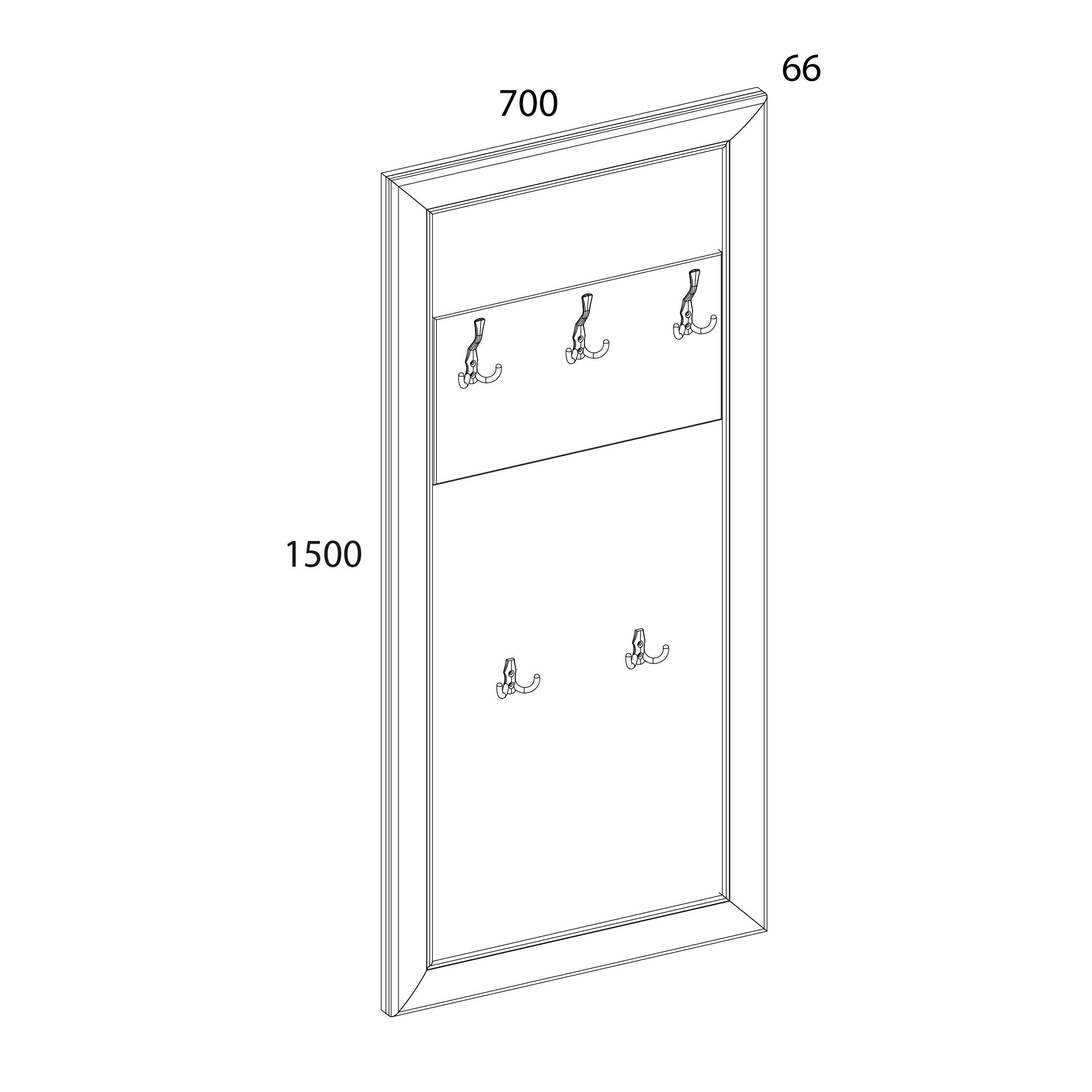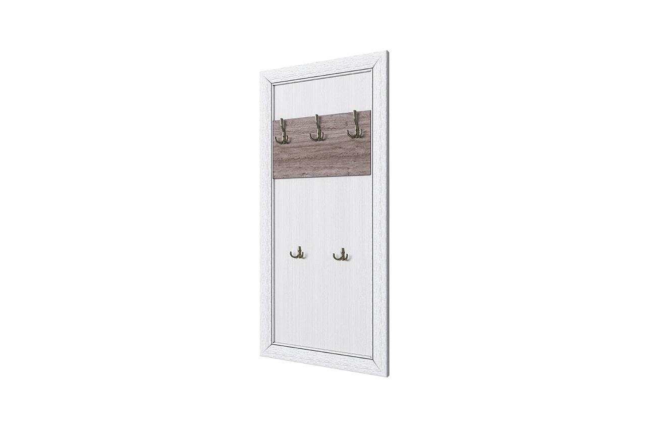 Вешалка OLIVIA. Такой элемент является неотъемлемой частью интерьера любой прихожей. Вешалка OLIVIA компактна и практична в использовании, не занимает полезное свободное пространство, комбинируется с тумбой 1S OLIVIA по ширине - 700 мм. Может крепиться на любой удобной высоте. Конструкция элемента представляет собой панель из ЛДСП, на которой установлены металлические крючки для одежды в два ряда – верхний ряд (три крючка), нижний ряд (два крючка – для размещения детской верхней одежды либо других предметов).
