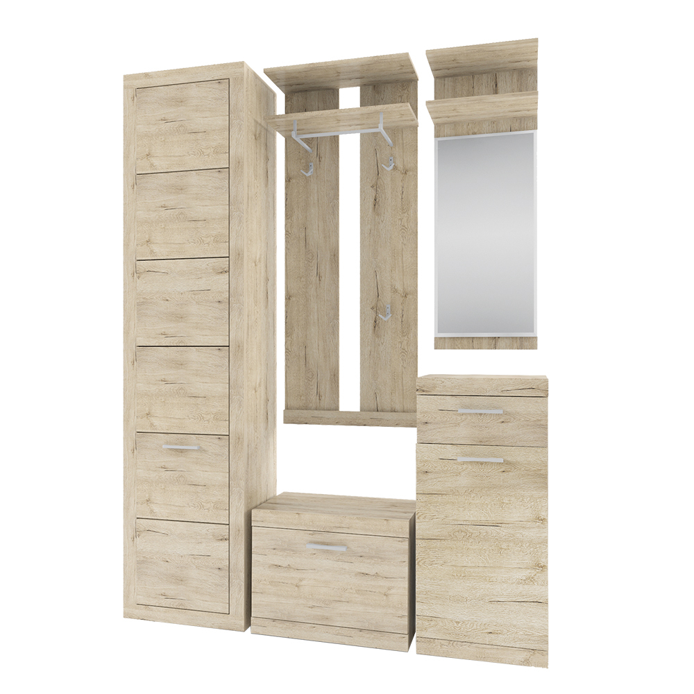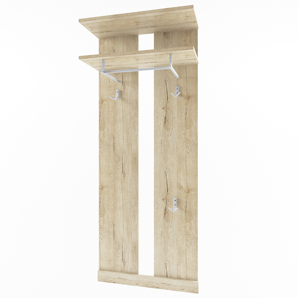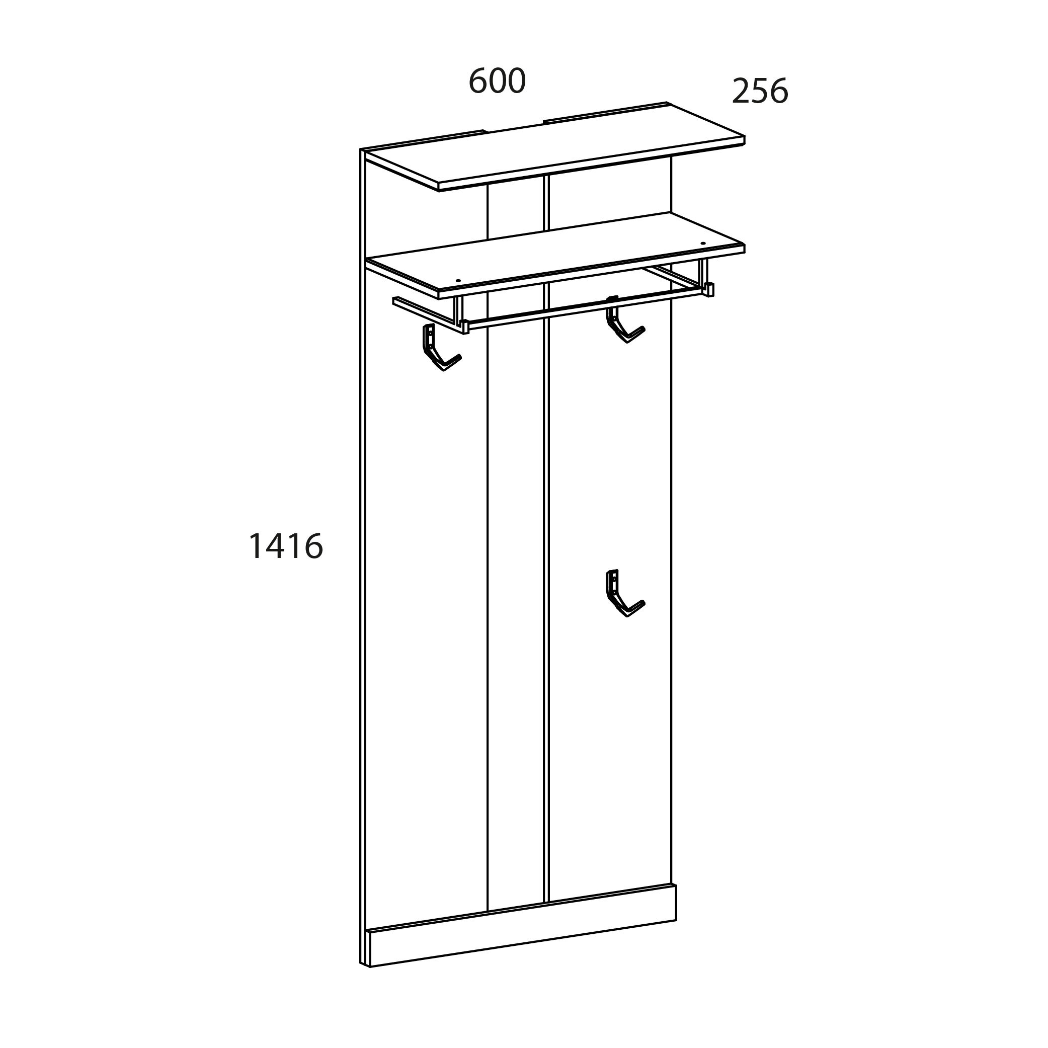 Вешалка 60 OSKAR – оформление удобной прихожей небольшой площади. Данный элемент можно дополнять другими модулями из коллекции OSKAR для создания необходимой композиции, нужной площади. Вешалка 60 сборной конструкции, настенная. Конструкция элемента представляет собой две вертикальные панели из ЛДСП, которые на расстоянии друг от друга соединены между собой планками из ЛДСП, открытую нишу, под нишей – вешалка. На панелях установлены крючки в два ряда для размещения верхней одежды.