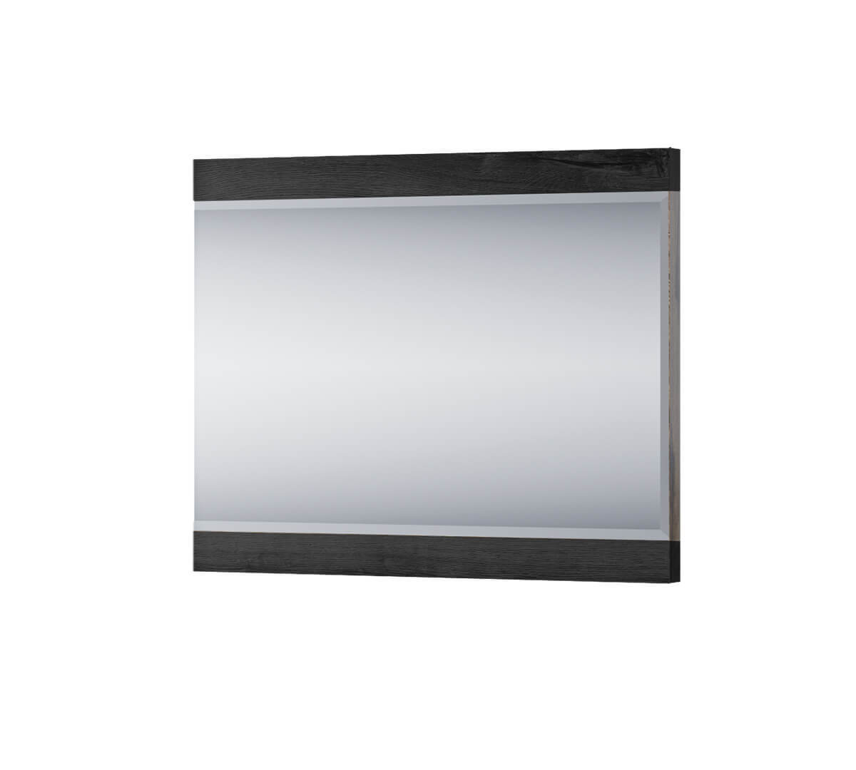 Зеркало навесное JAGGER преумножит освещённость помещения, а также станет прекрасным акцентом дизайна гостиной или спальни. Конструкция элемента представляет собой панель из ЛДСП, на которую крепится зеркало и планки в чёрном цвете.